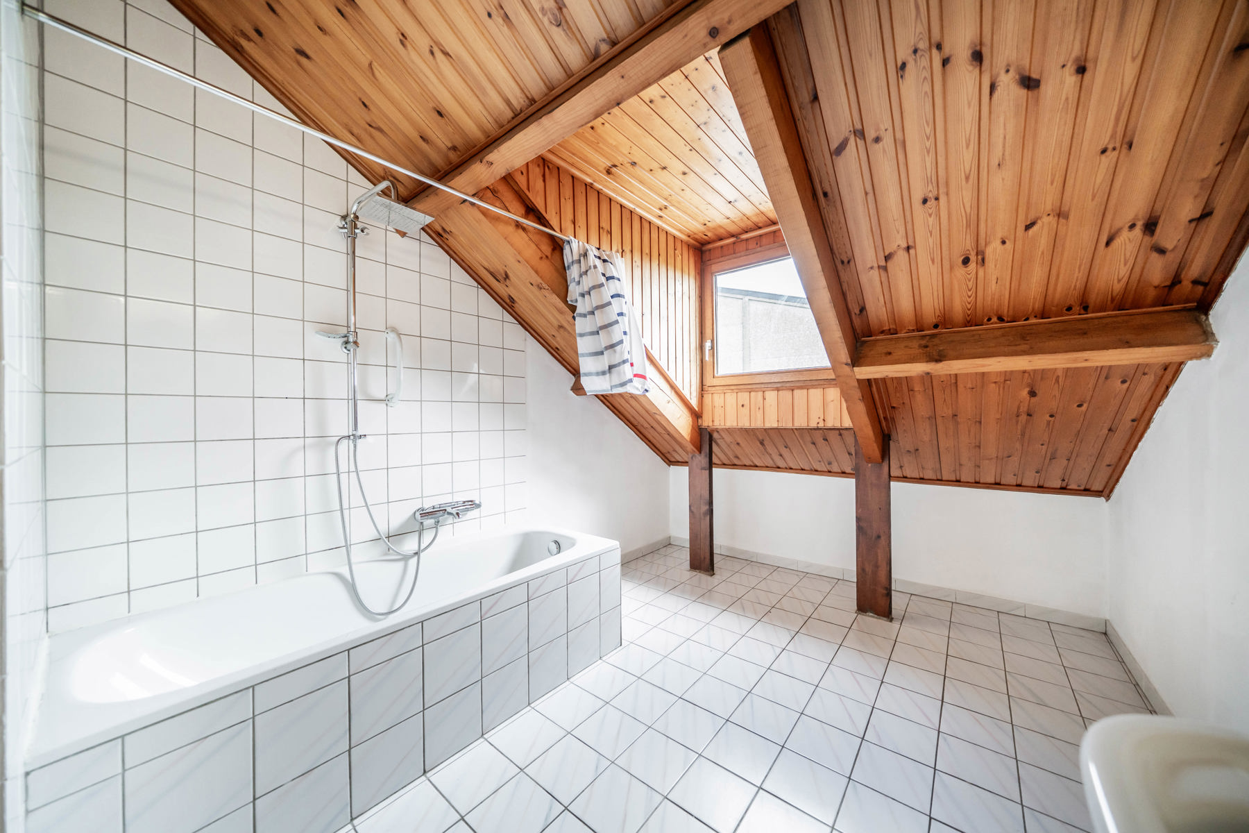 Outre sa situation et sa rentabilité, ce bien est sain, sans travaux indispensables à prévoir outre le placement d’une cuisine au 1er.